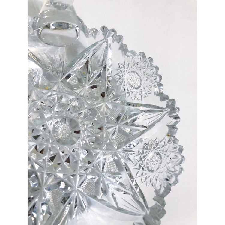 American Brilliant Nappie Double handled relish bowl. Cut glass Star design
