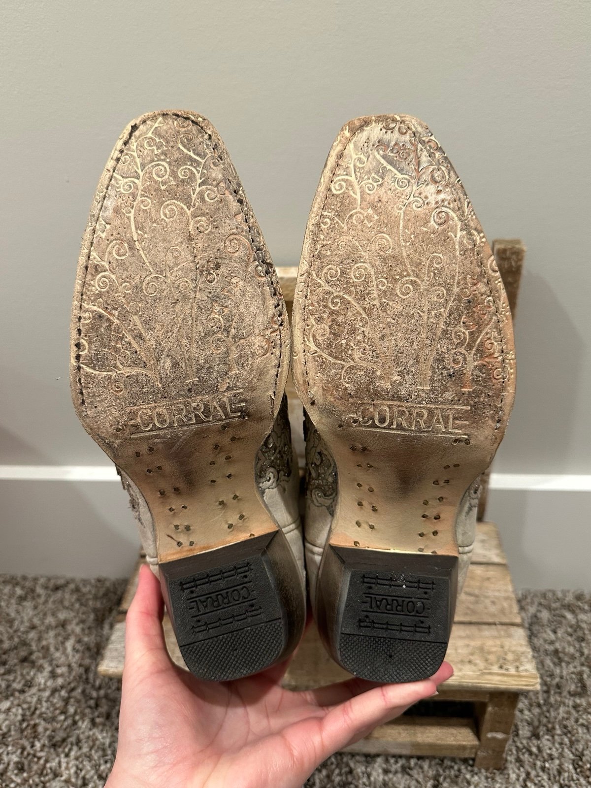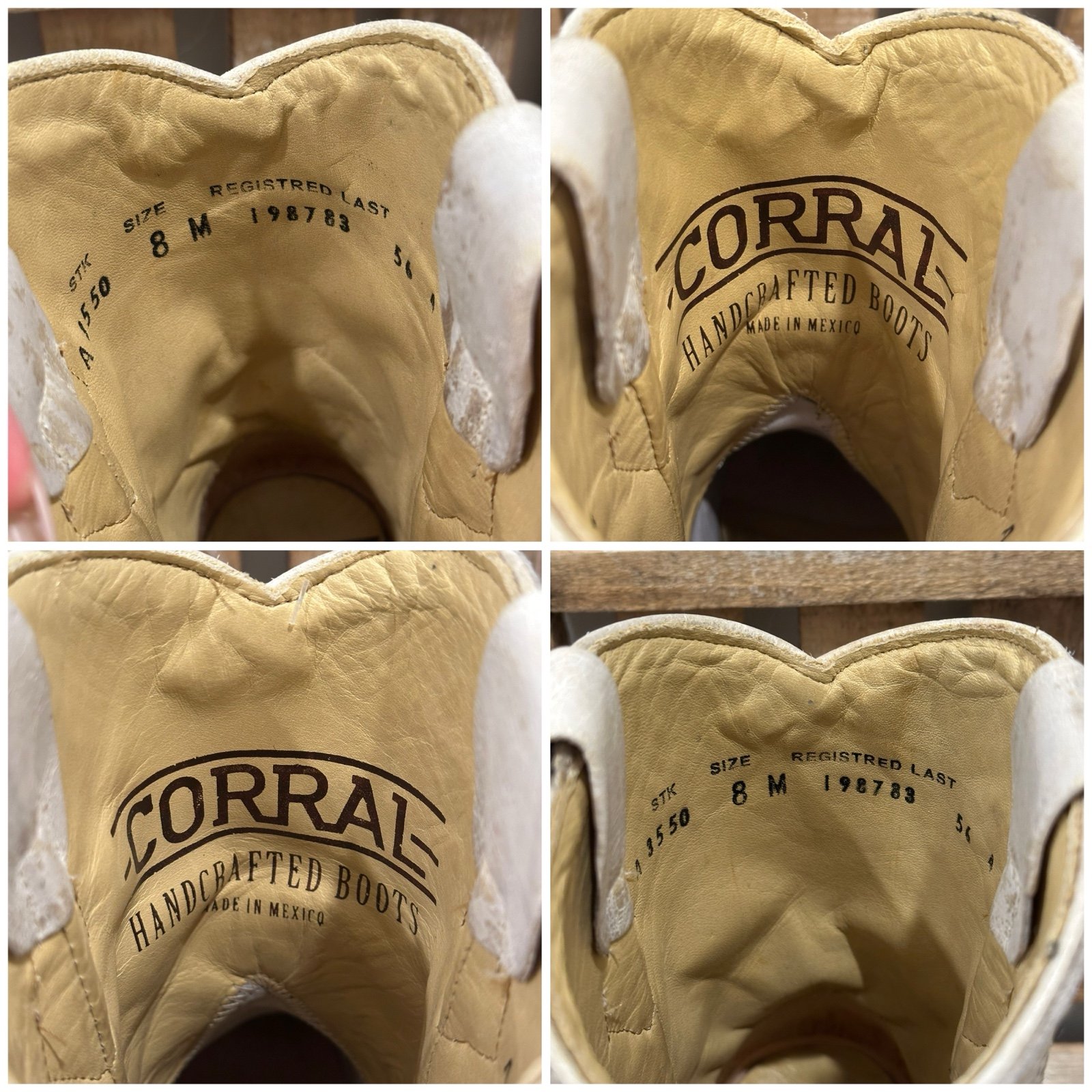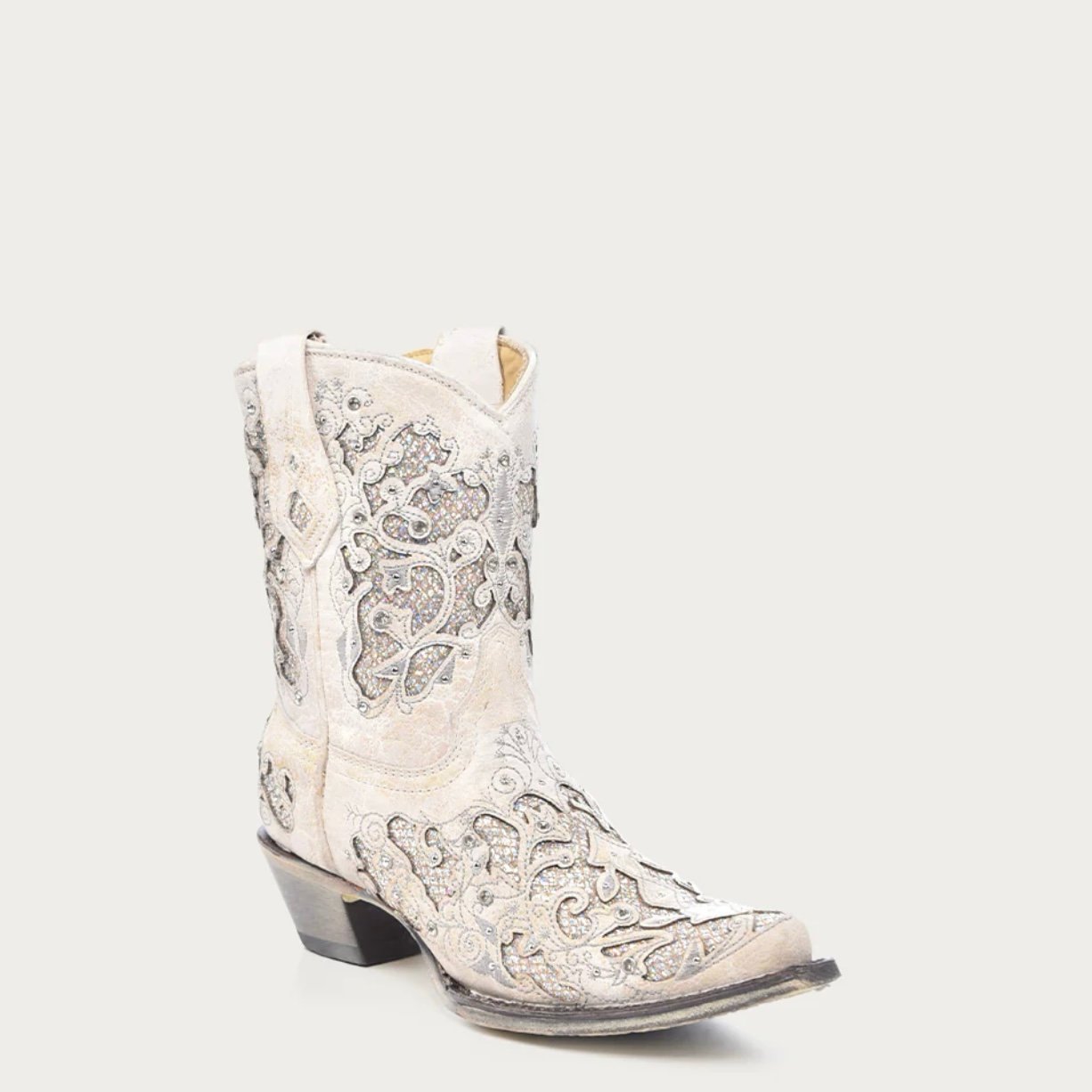 Corral White Glittered Inlay W/ Crystals Snip Toe Short Cowgirl Western Boots Booties Shoes! US Women's size 8! 100% authentic! From a smoke-free home!