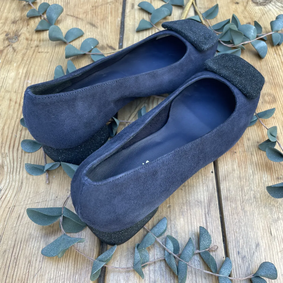 Misez sur l’élégance avec les ballerines REQINS KEFIR bleu marine, un modèle qui conjugue confort et style raffiné. Leur talon de 5cm, habillé de paillette bleu marine, apporte une touche de brillance sophistiquée, parfaite pour illuminer vos tenues de jour comme de soirée. Sur le devant, un détail pailleté assorti vient compléter le design avec subtilité, offrant un charme discret mais affirmé.