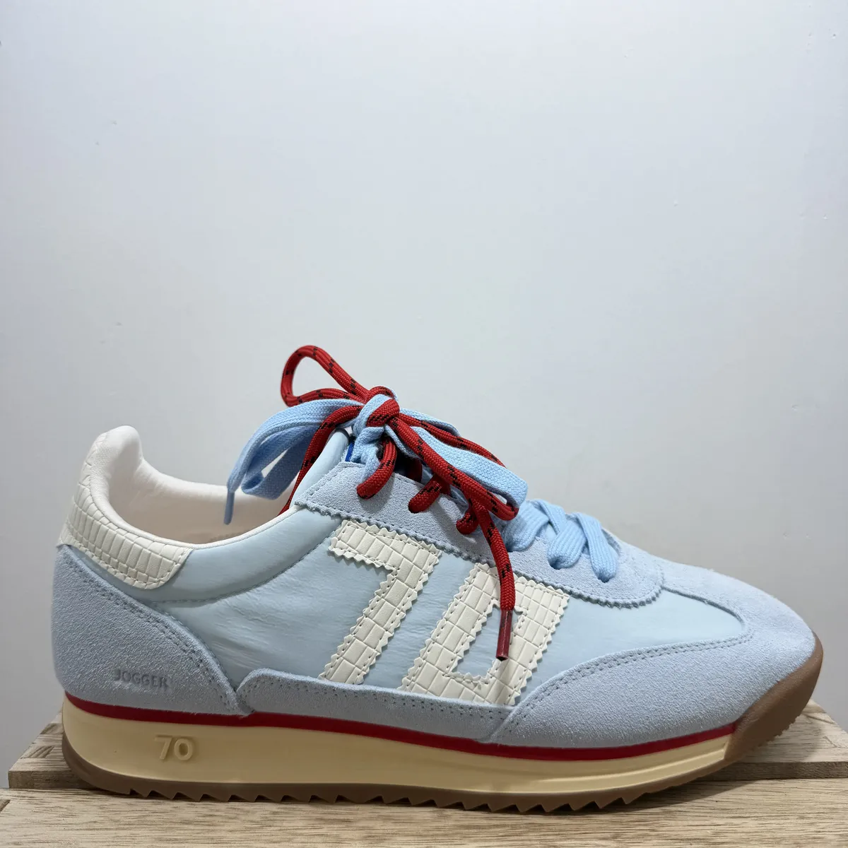 Ces baskets BACK70 bleu ciel se distinguent par leur design épuré et leur couleur neutre, idéale pour un usage quotidien. Avec une semelle fine d’environ 2cm, elles offrent une sensation de légèreté tout en garantissant une bonne adhérence et un confort durable. La tige basse permet une grande liberté de mouvement et un style casual facile à assortir. Le logo BACK70 et les détails soignés comme le double lacets, le blanc… complètent l’esthétique rétro-chic de la paire. Conçues pour un port quotidien, ces baskets allient style, confort et polyvalence !