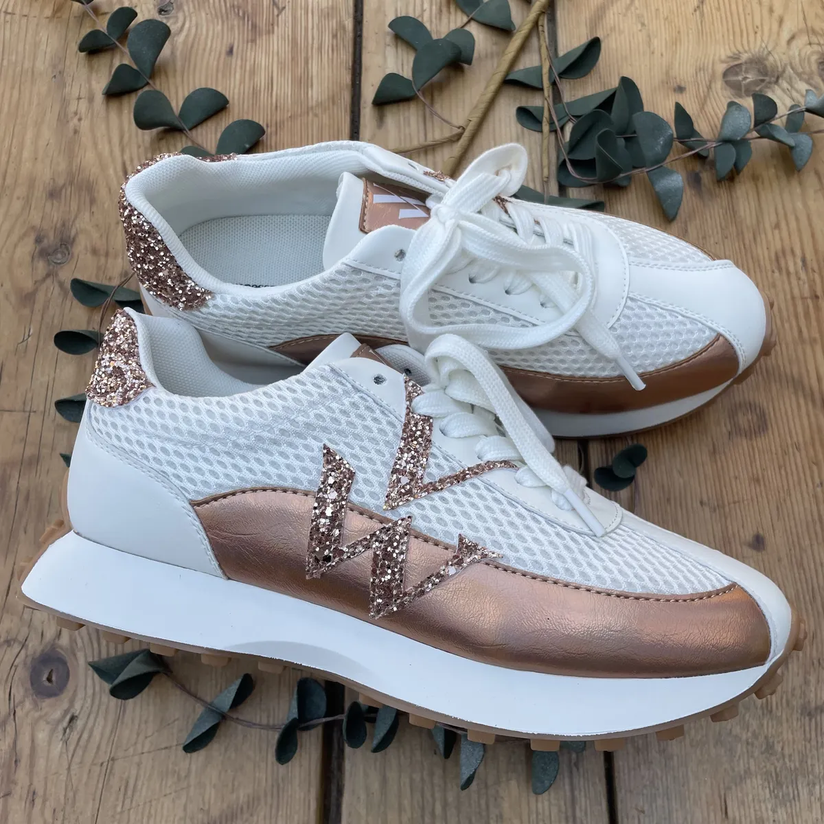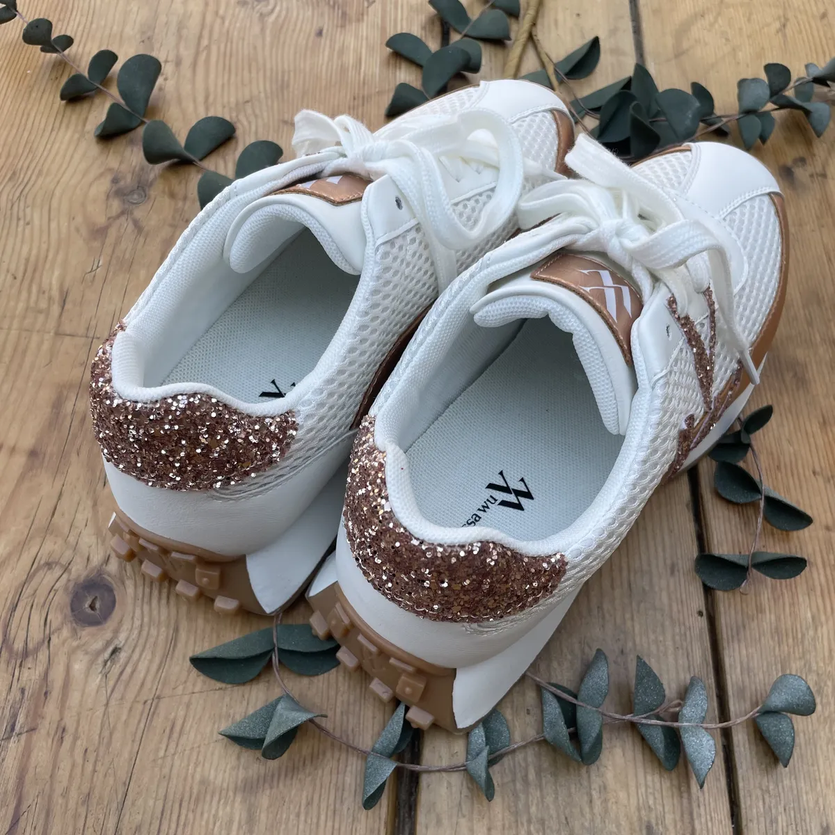 Craquez pour les baskets VANESSA WU BK2715, un modèle qui associe élégance et modernité. Confectionnées en matière synthétique blanche avec des empiècements rose métallisé, elles se distinguent par leur célèbre logo « W » pailleté sur le côté, véritable signature de la marque. Leur semelle épaisse assure confort et stabilité tout au long de la journée, tandis que les lacets blancs apportent une touche sportive et dynamique.