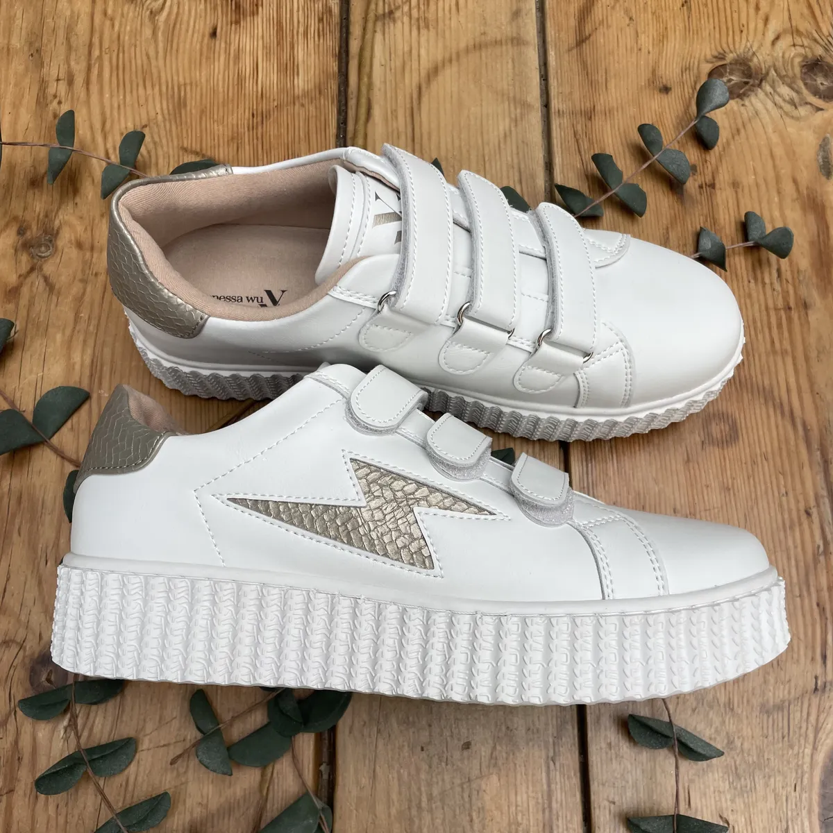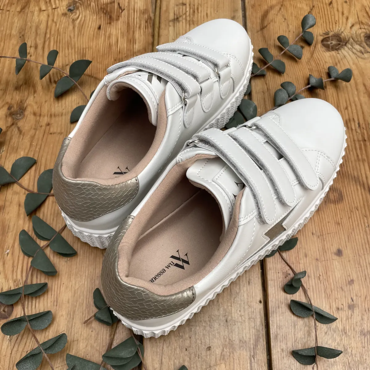 Misez sur l’originalité avec les baskets VANESSA BK2281 en similicuir blanc. Elles se distinguent par leur scratch blancs faciles à enfiler et leur éclair taupe effet écaille, qui apporte une touche raffinée et unique. Dotées d’une semelle camel confortables de 4cm, elles garantisent stabilité et style tout au long de la journée. Le mélange du blanc lumineux et de l’effet écaile taupe leur donne une allure moderne et élégante, facile à associer avec un jean, un pantalon clair ou même une robe casual.