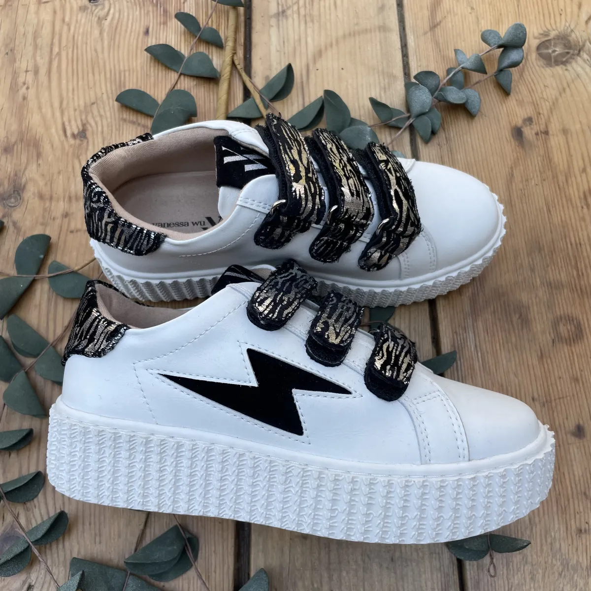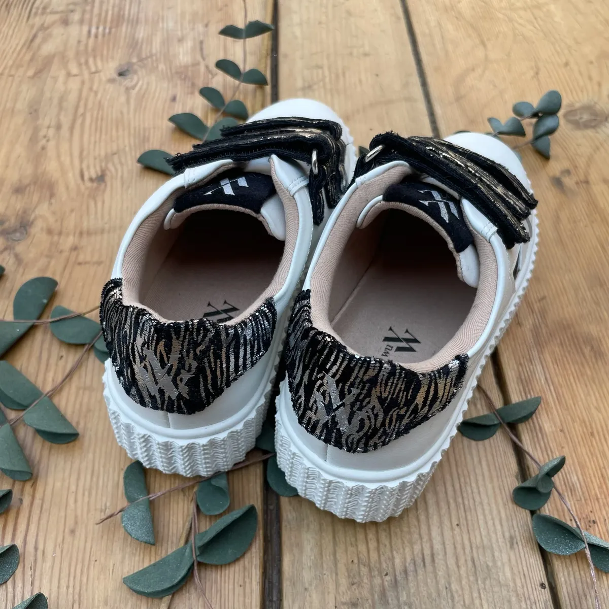Craquez pour ces baskets enfant en similicuir au design fun et tendance. Faciles à enfiler grâce à leurs scratchs zébrés, elles assurent un maintien parfait du pied et une autonomie idéale pour les plus petits. L’éclair contrastant sur le côté apporte une touche dynamique et originale, tandis que leur semelle souple garantit confort et stabilité à chaque pas.