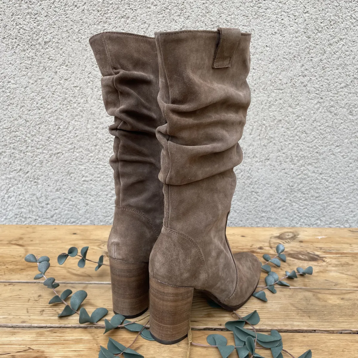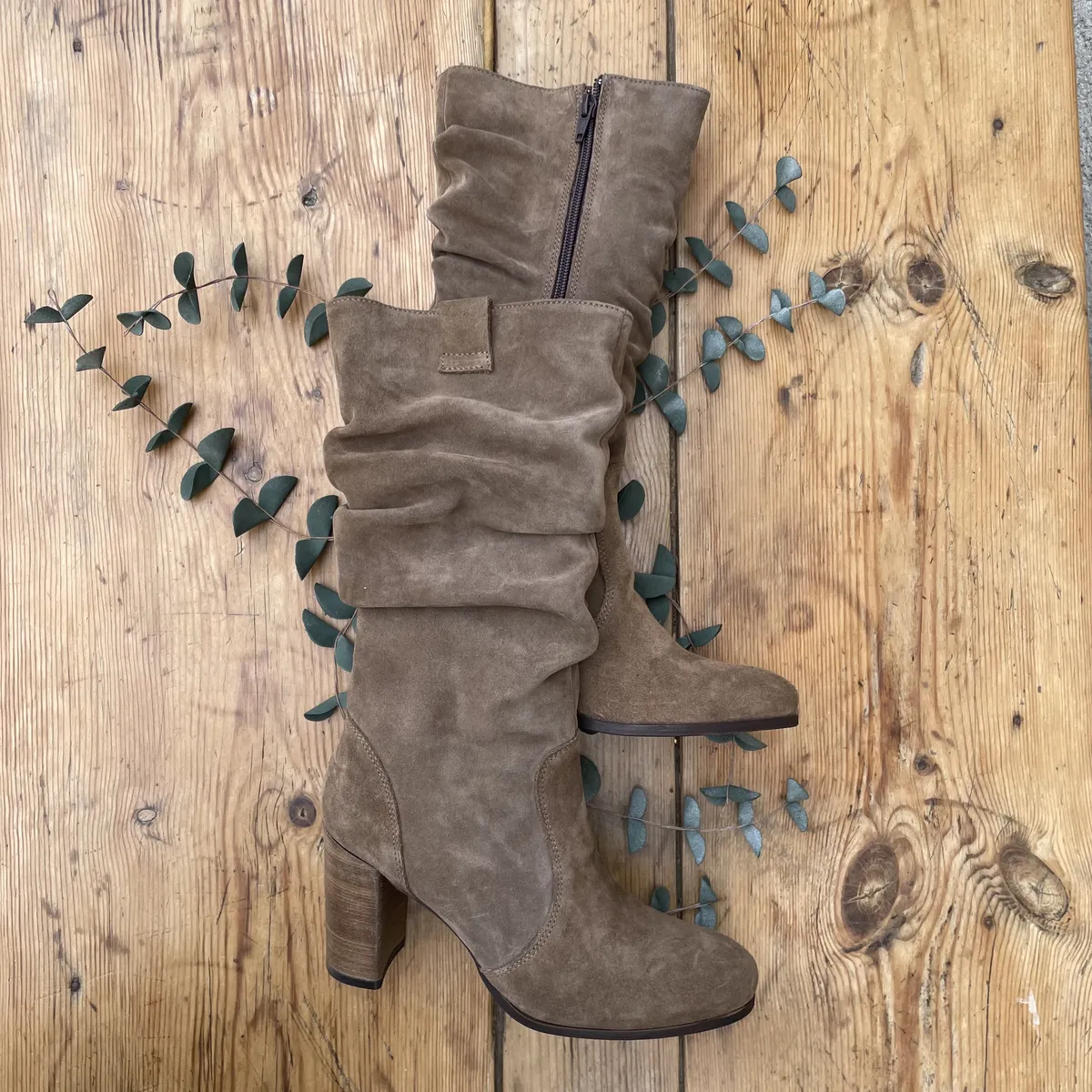 Les bottes ALIWELL ISEN associe féminité et confort avec son nubuck marron clair doux au toucher et son talon de 8cm qui allonge la silhouette tout en restant agréable à porter. Sa fermeture éclair marron foncé parcourt toute la longueur de la botte pour un enfilage facile, tandis que l’effet légèrement froissé du nubuck lui apporte une allure moderne et décontractée. Avec une longueur d’environ 30cm, elle s’adapte aussi bien aux looks citadins chics qu’aux styles plus casual.