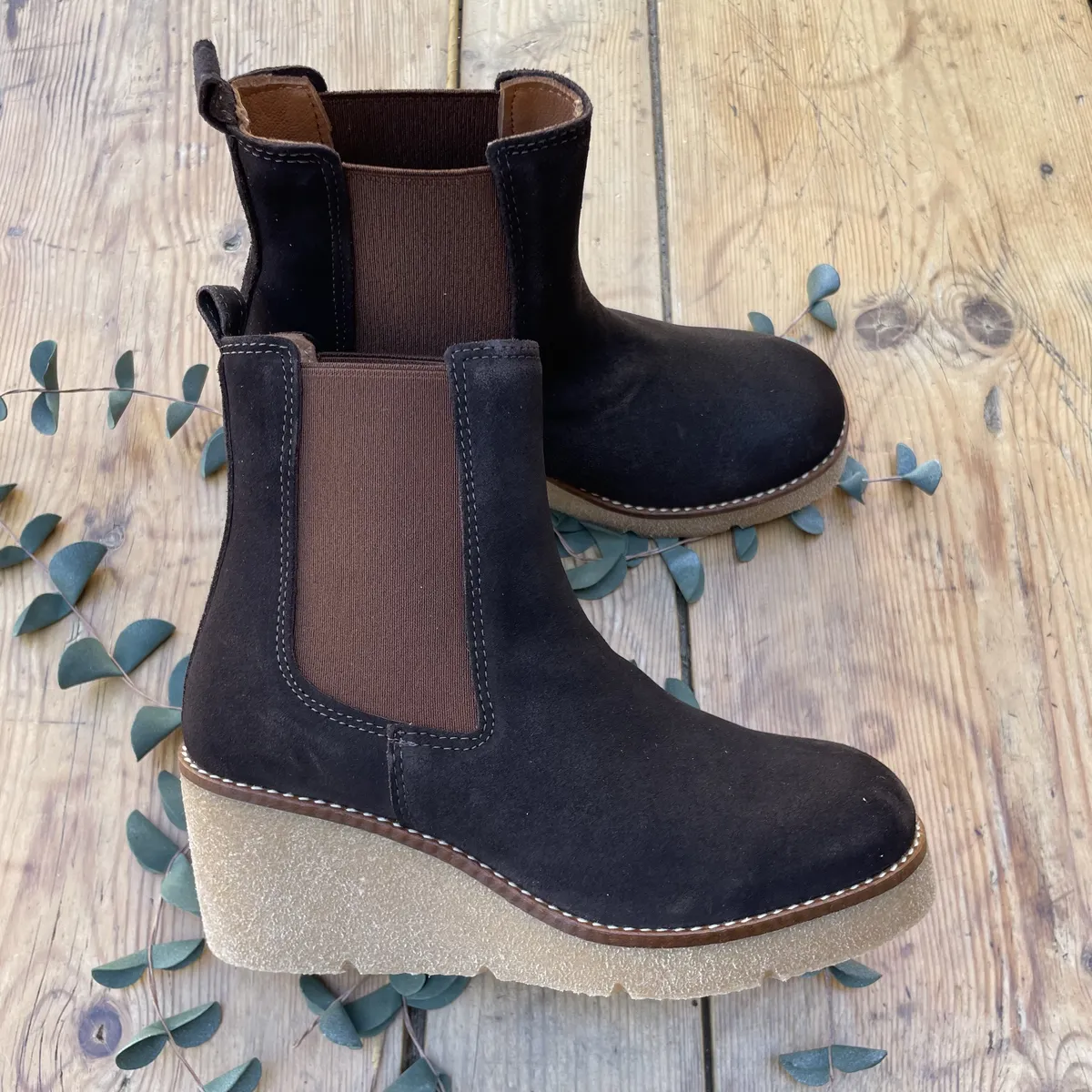 Ces boots signées SMS offrent un style moderne et pratique. Conçues en nubuck marron foncé, elles sont dotées d’un élastique contrastant marron clair qui permet un enfilage facile et un maintien optimal du pied. Leur semelle en gomme, à la fois légère et résistante, assure un confort durable. Avec ses 7cm de hauteur, elle apporte de l’élégance tout en restant stable et agréable à porter au quotidien.