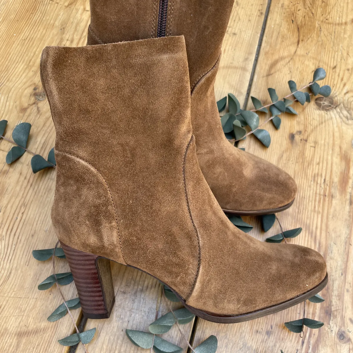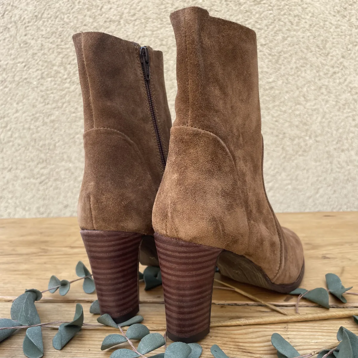 Cette bottine en nubuck camel incarne l’élégance intemporelle. Son design sobre et moderne est sublimé par un talon haut de 8cm, qui raffine la silhouette tout en apportant une touche sophistiquées à vos tenues. La fermeture éclair latérale assure un enfilage rapide et pratique, tandis que la qualité du nubuck garantit confort et durabilité.