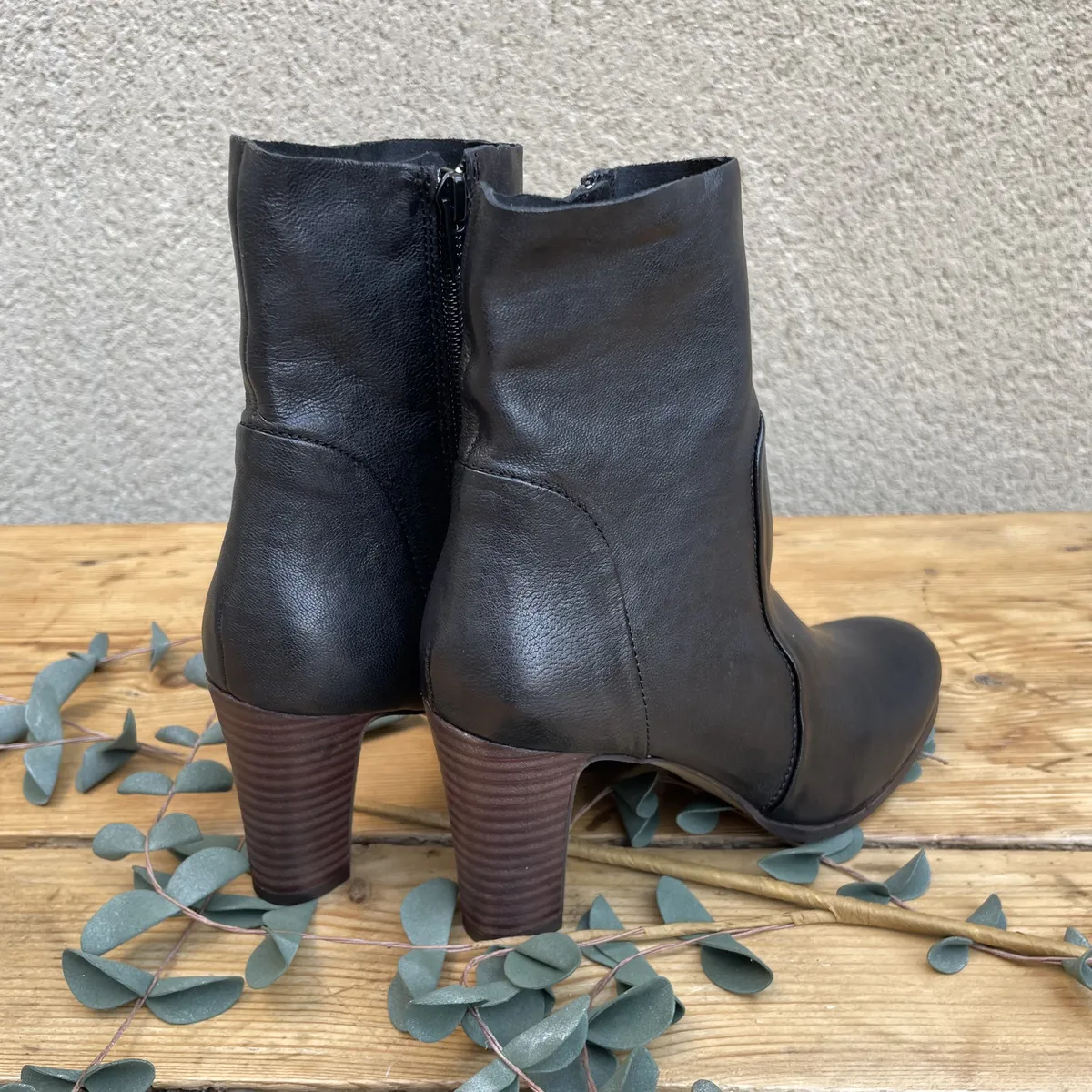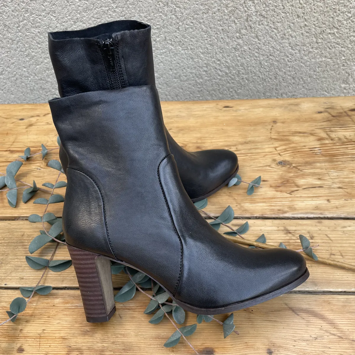 Cette bottine en cuir noir lisse incarne l’élégance intemporelle. Son design sobre et moderne est sublimé par un talon haut de 8cm, qui raffine la silhouette tout en apportant une touche sophistiquées à vos tenues. La fermeture éclair latérale assure un enfilage rapide et pratique, tandis que la qualité du cuir garantit confort et durabilité.
