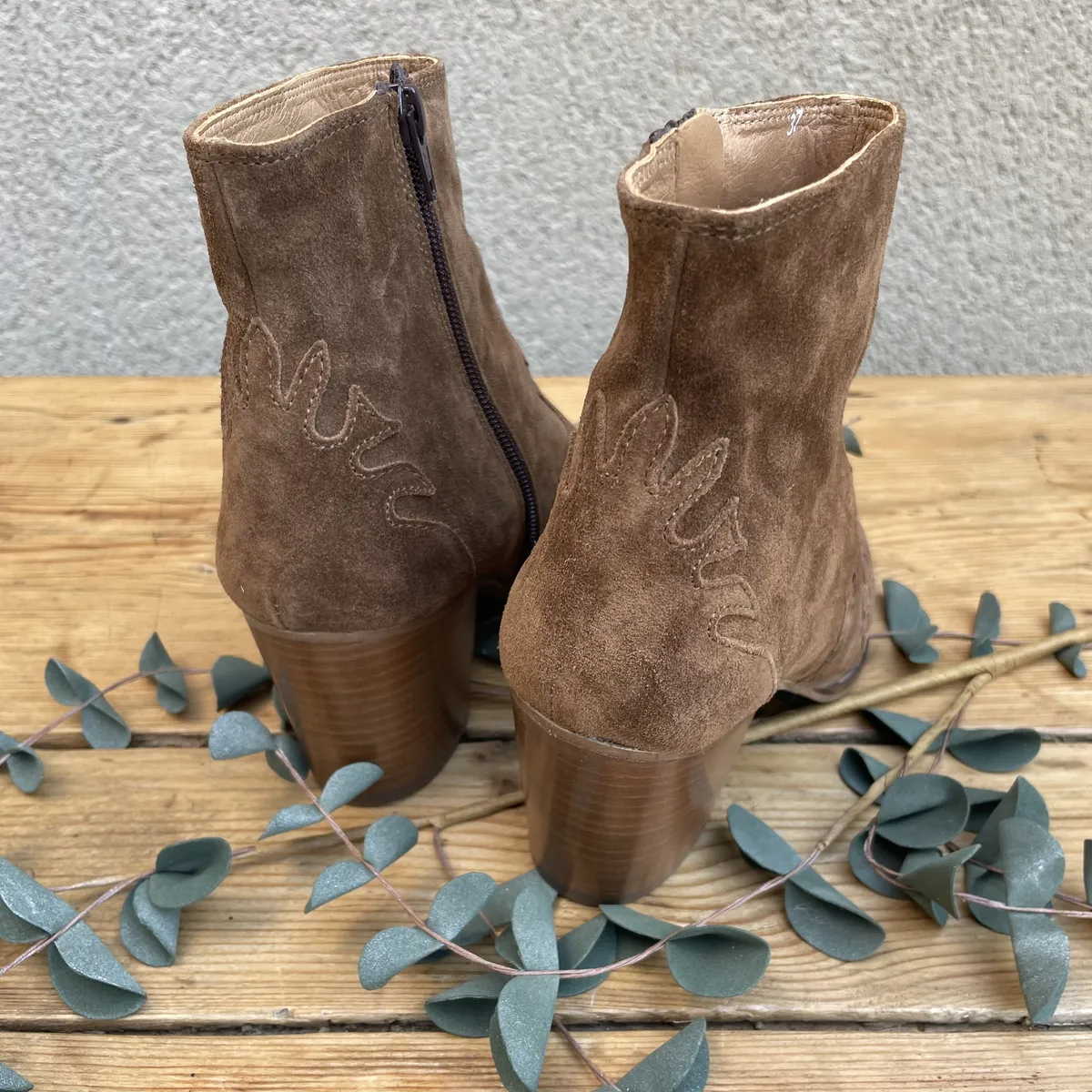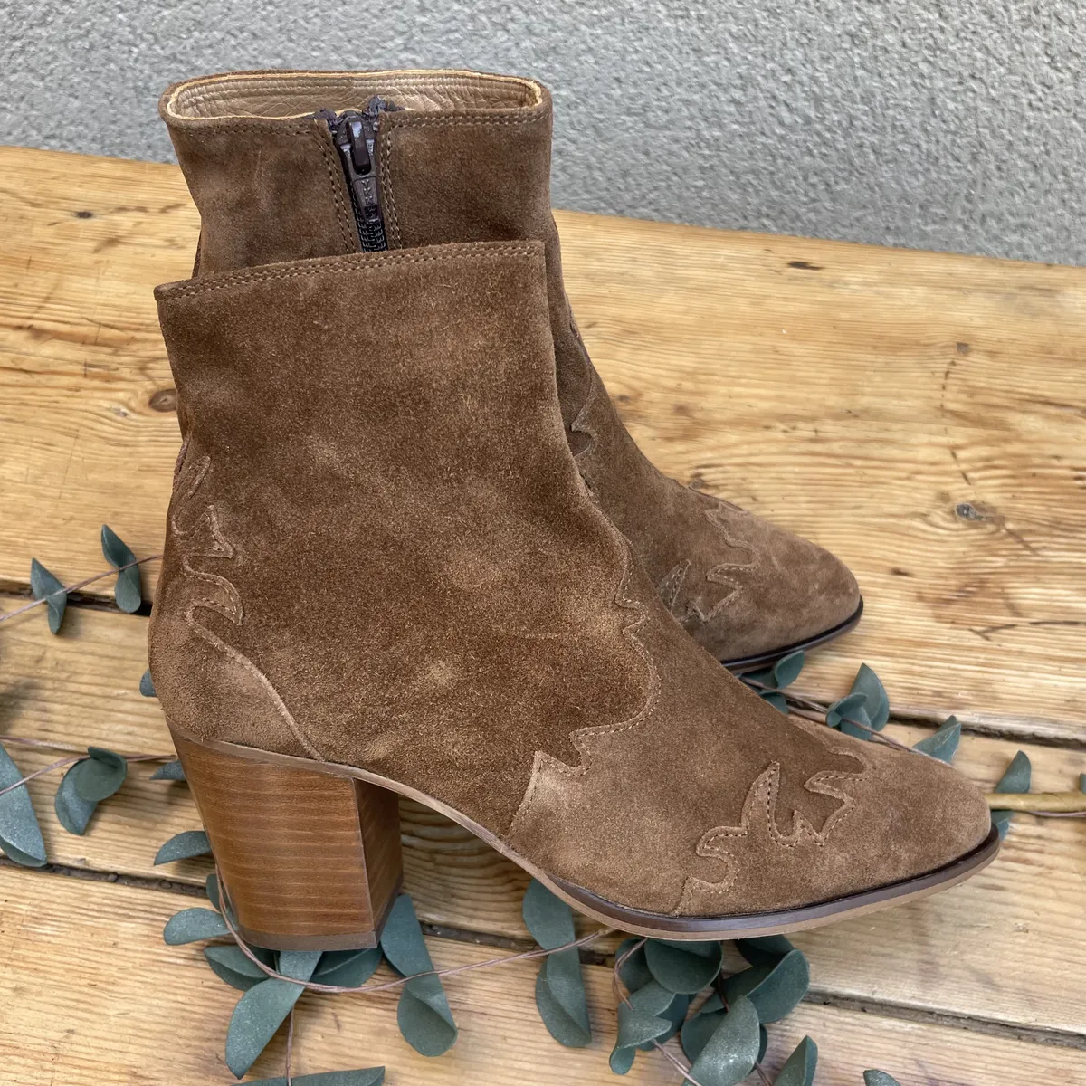 Ces bottines en nubuck camel se distinguent par leur design chic et moderne. Avec un talon de 6,5cm, elles offrent élévation et confort tout au long de la journée. Polyvalentes, elles se portent aussi bien avec des tenues casual ou habillées.