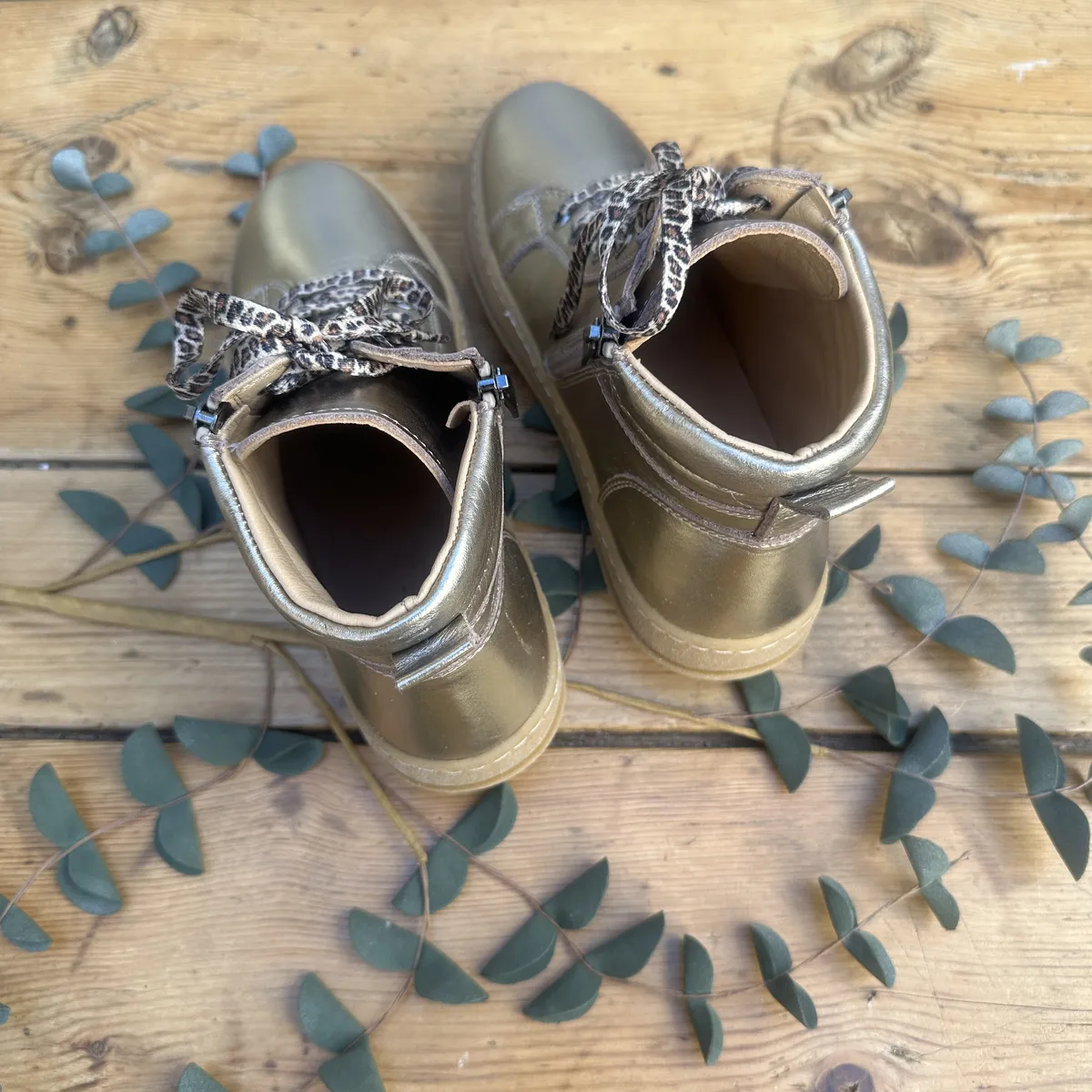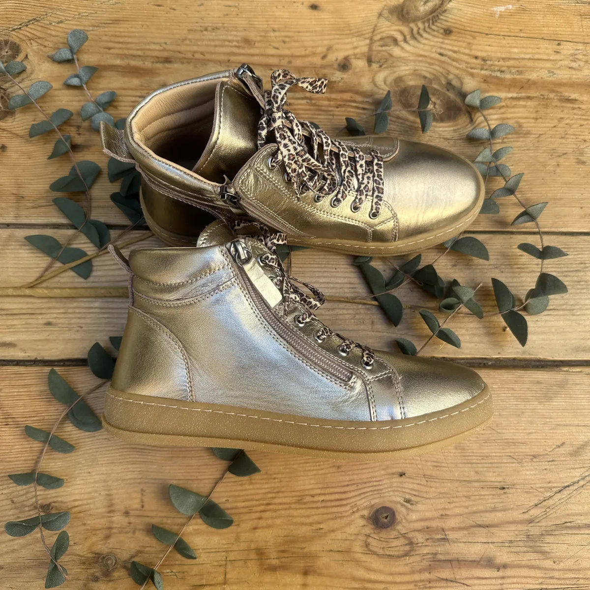Ces chaussures COCO marient l’audace et l’élégance. Leur teinte dorée lumineuse se combine à des lacets léopard pour une touche sauvage et mode. Pensées pour le quotidien, elles associent praticité et style grâce à leurs lacets réglables et leurs deux fermetures éclair latérales.