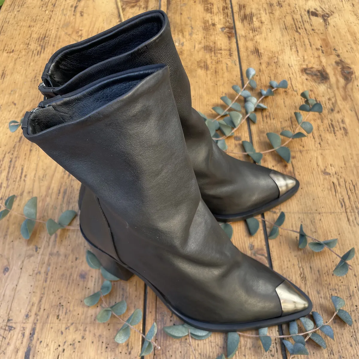 Optez pour un style chic et confortable avec ces bottes en cuir souple. Leur talon carré de 4cm offre une légère élévation stable, tandis que le devant brillant apporte une touche élégante et sophistiquée au modèle.