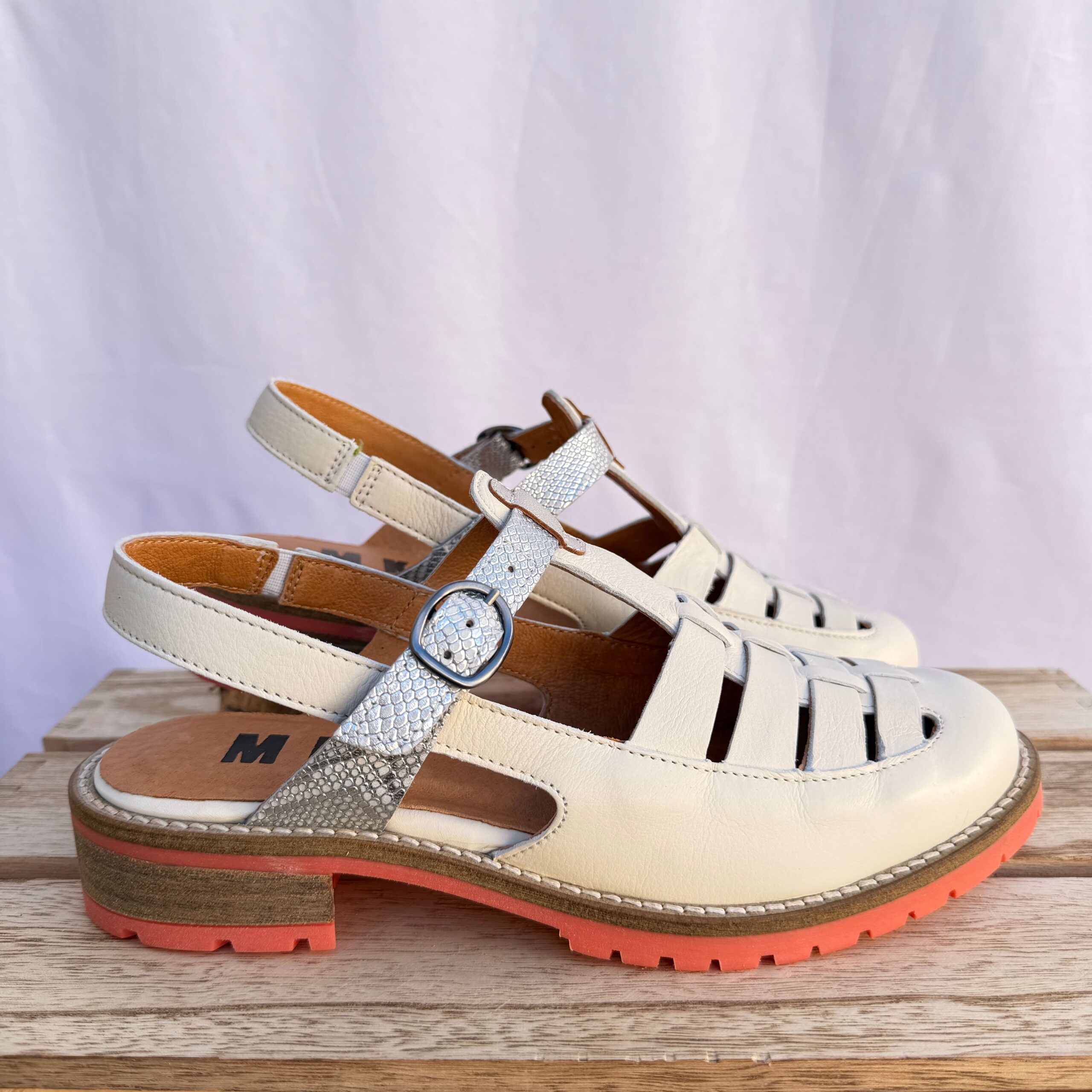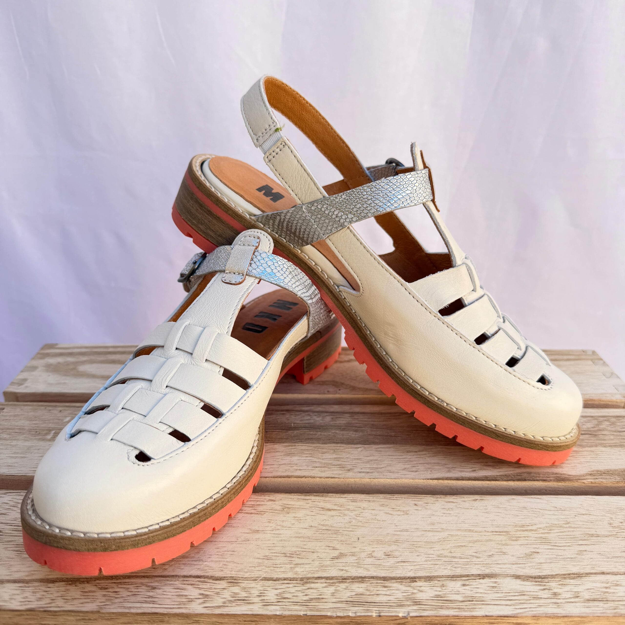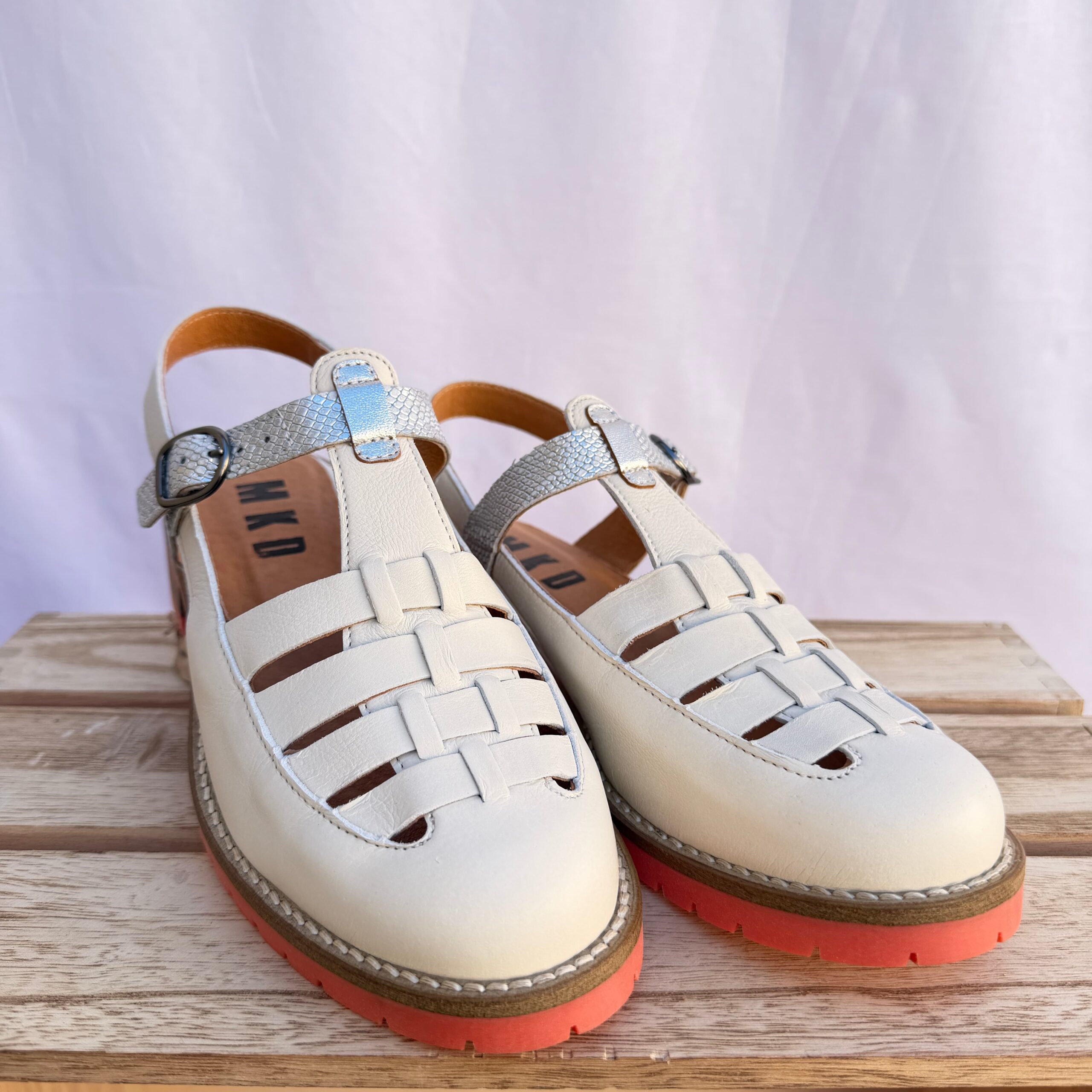 Affirmez votre style avec ces chaussures MKD blanche au design moderne et audacieux. Plus ouvertes, elles offrent une sensation de légèreté et laissent le pied respirer, idéales pour les journées ensoleillées. Leur semelle rosé assurent une excellente adhérence et un confort optimal au quotidien. La bride permet un bon maintien du pied, pour une démarche stable et agréable tout au long de la journée !