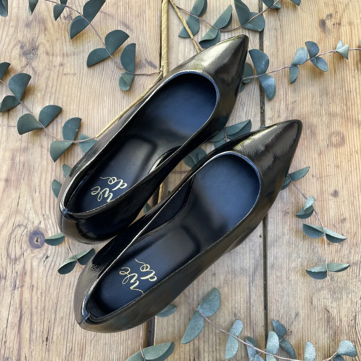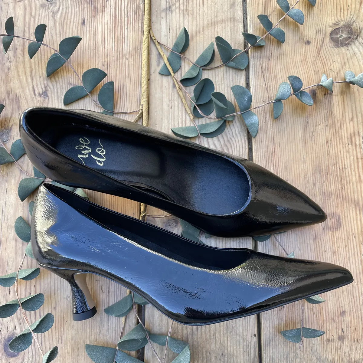Cet escarpin WEDO incarne la féminité et le raffinement. Conçu en cuir noir vernis, il se distingue par sa brillance subtile et sa silhouette élégante. Son talon fin de 5,5cm offre la juste hauteur pour allongerla jambe tout en garantissant un confort optimal au quotidien. Un modèle intemporel, idéal aussi bien pour le bureau, une soirée ou un évènement habillé.