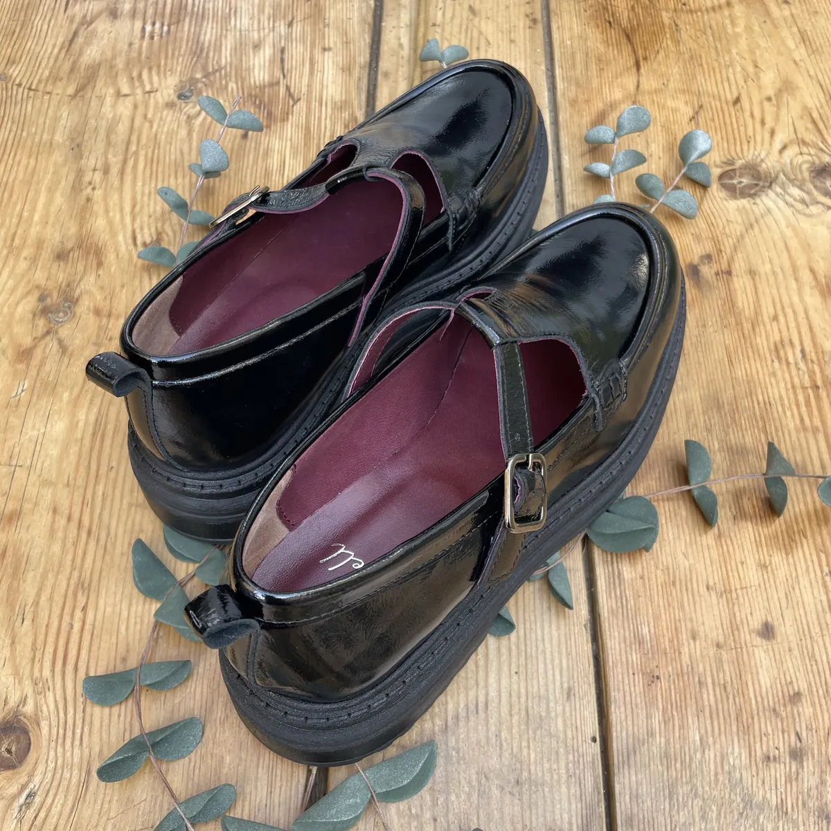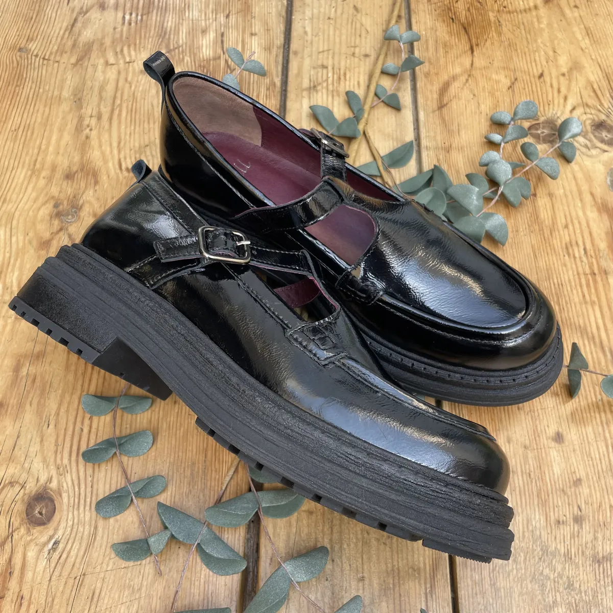 Ce mocassin en cuir se distingue par sa semelle noire crantée, qui apporte modernité et adhérence. Une lanière élégante passe autout de la cheville et se ferme par un crochet, ajoutant une touche sophistiquées et pratique au modèle. Polyvalent et confortable, il complète aussi bien des looks casual que plus habillés, pour un style contemporain et raffiné.