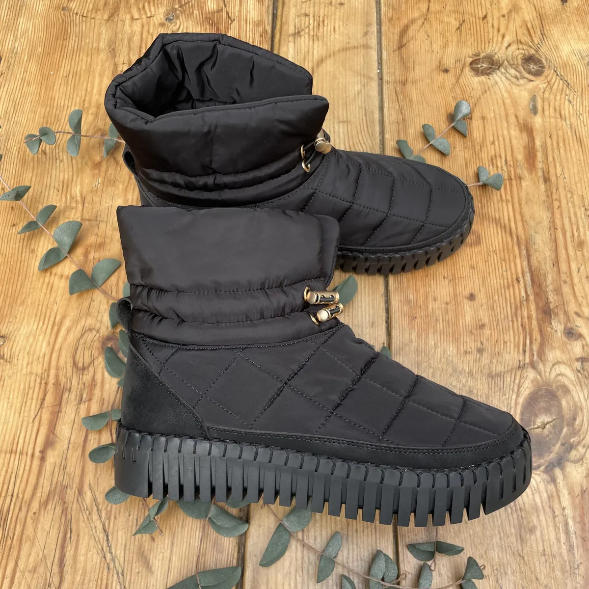 Les boots ILSE allient confort et style moderne. Leur matière tissu matelassé apporte chaleur et souplesse idéal pour l’hiver. La semelle épaisse et crantée offre une excellente adhérence, tandis que le cordon ajustable avec détail métallique apporte une touche tendance et pratique. Un modèle pour le quotidien, facile à enfiler et parfait pour compléter vos tenue.